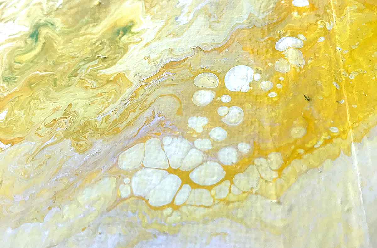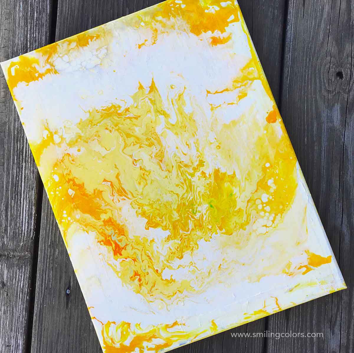 Pop of yellow. I really want to explore simple paint pours in detail next time. This one has yellow, gold, orange and white and it turned out so nice!