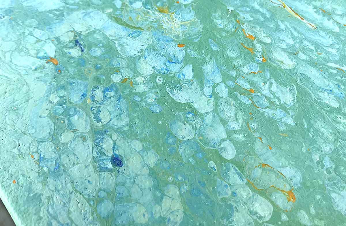 For this painting I created a dirty pour of greens, blues, whites and touch of yellow. I used a lot of subtle shades of the greens and I can totally see them all on the canvas. I was able to create some “cells” but all in all this canvas just makes me feel calm.