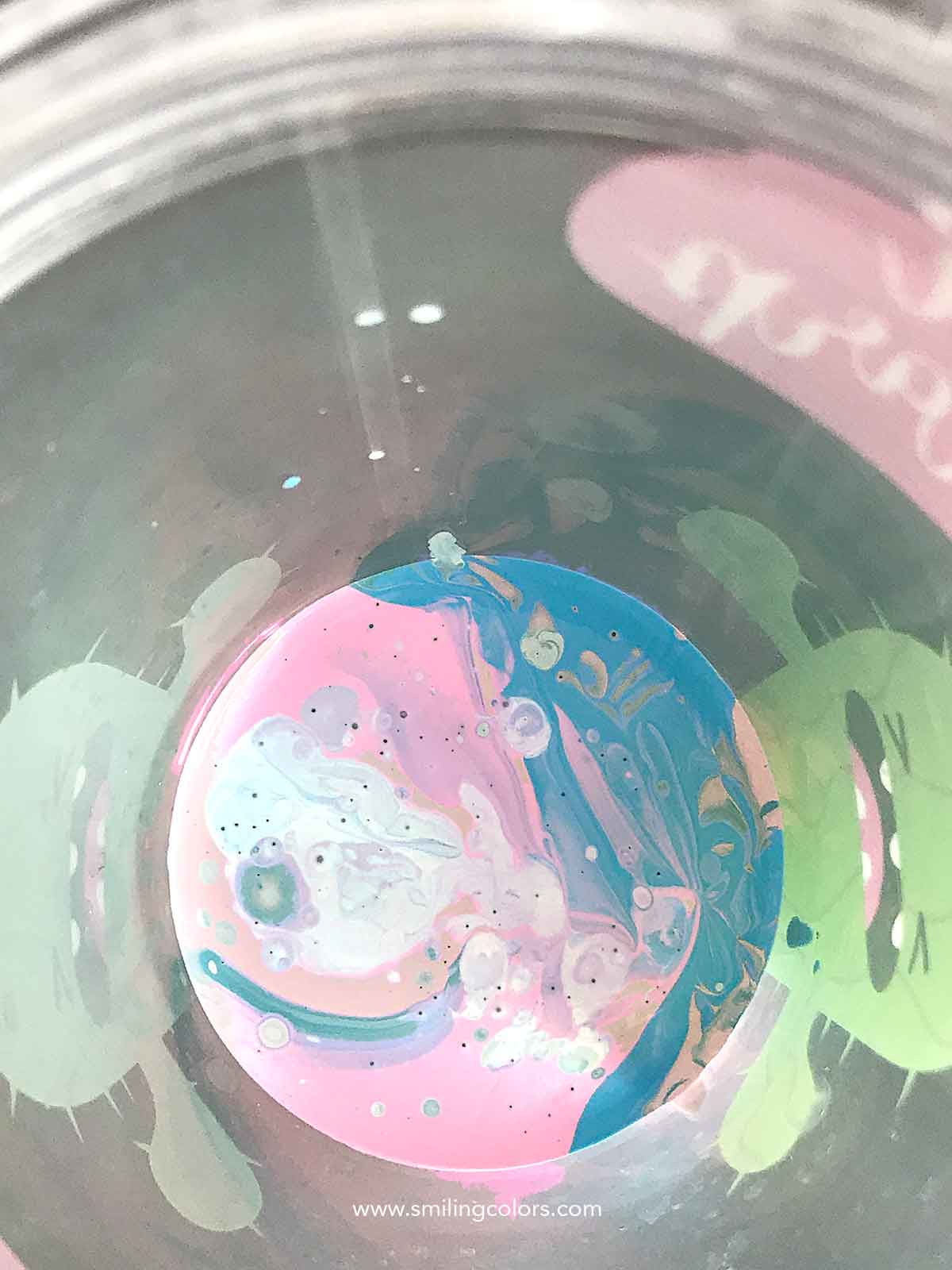 In most of my projects I used the dirty pour technique. You take a large cup, and pour your individual diluted colors one a top another to create a mixture. This method is called the dirty pour and always yields unexpected results. Which is the most fun!