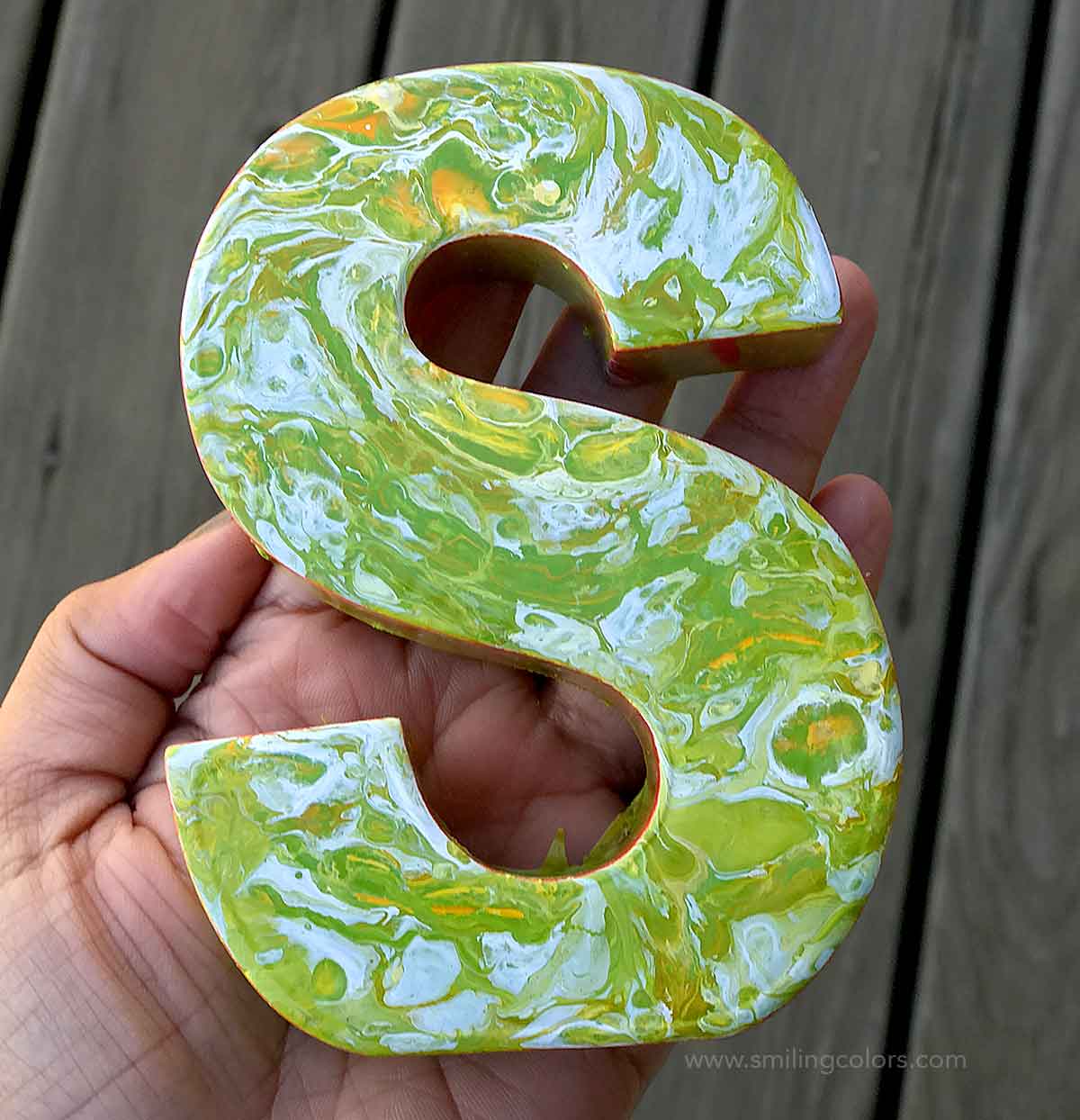 Poured leftover random paints onto this small alphabet monogram and I love how the color swirls around! A definite favorite.