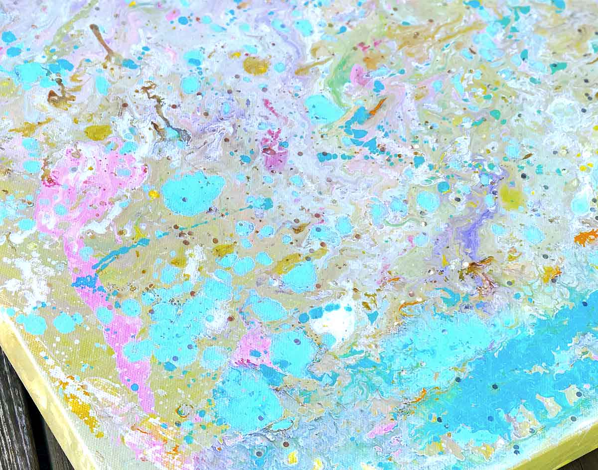 When you mix paint with a pouring medium you change the consistency of the paint. Instead of thick paint that you lift with a paint brush to paint, you now have a thinned out (yet richly pigmented) paint that you can pour onto a canvas. This liquidity yields so many new options- the paint moves and blends differently and is so much fun!